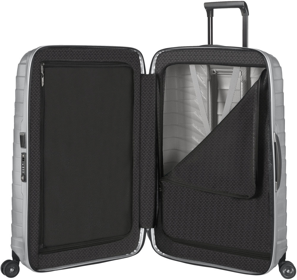 Відкрийте нову еру високопродуктивних подорожей з Proxis. Корпус виготовлений з Roxkin ™, ексклюзивного багатошарового матеріалу, розробленого Samsonite. Матеріал має амортизуючі властивості і пропонує чудову міцність, пружність і легкість. Вишуканий дизайн плюс хороша внутрішня організація для задоволення усіх ваших потреб в подорожі.