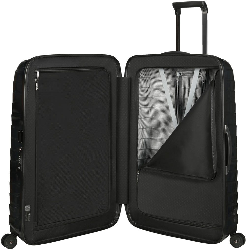 Відкрийте нову еру високопродуктивних подорожей з Proxis. Корпус виготовлений з Roxkin ™, ексклюзивного багатошарового матеріалу, розробленого Samsonite. Матеріал має амортизуючі властивості і пропонує чудову міцність, пружність і легкість. Вишуканий дизайн плюс хороша внутрішня організація для задоволення усіх ваших потреб в подорожі.