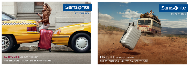 У туристов есть возможность наслаждаться непосредственно путешествиями, не обращая внимания ни на какие неприятности, случающиеся на их пути, такие как падение чемодана с крыши автобуса в африканской равнине или скрежет багажа, застрявшего между двумя автомобилями в Нью-Йорке, потому что Samsonite рядом с ними и заботится об их вещах. Все это стало возможным благодаря инновационной коллекции чемоданов Samsonite Curv ®, сделанной из материала Curv, который обеспечивает беспрецедентную комбинацию легкости и прочности.