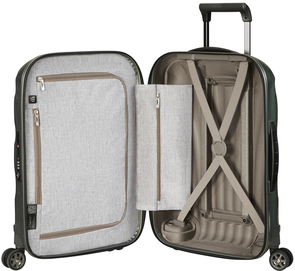 Внутри имеется подкладка под маркой Samsonite, сделанная из Recyclex®, ткани, изготовленной из 100% переработанных пластиковых бутылок из ПЭТ;